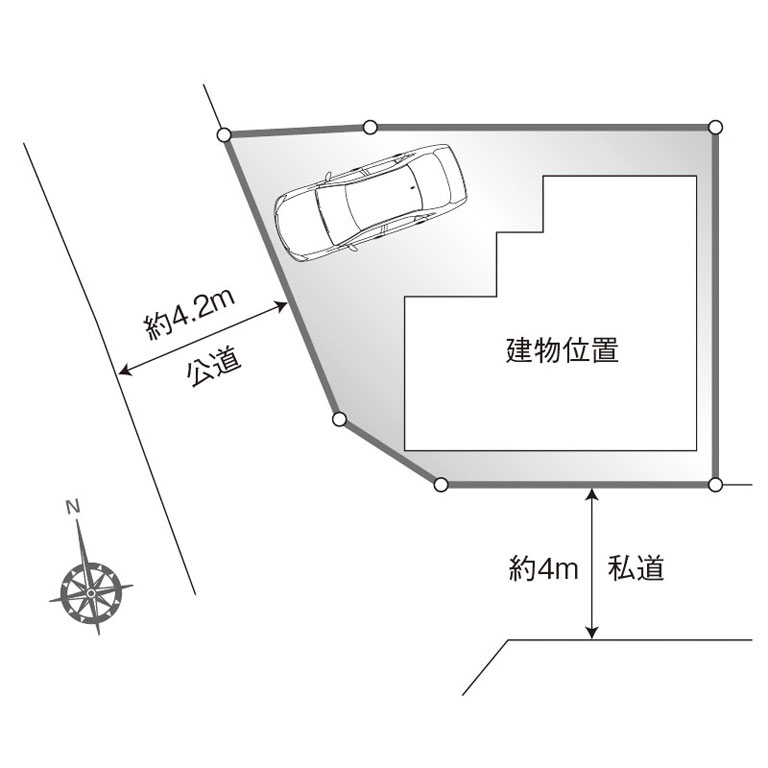 | 接道 | 西側約4.2m公道・南側約4m私道 |